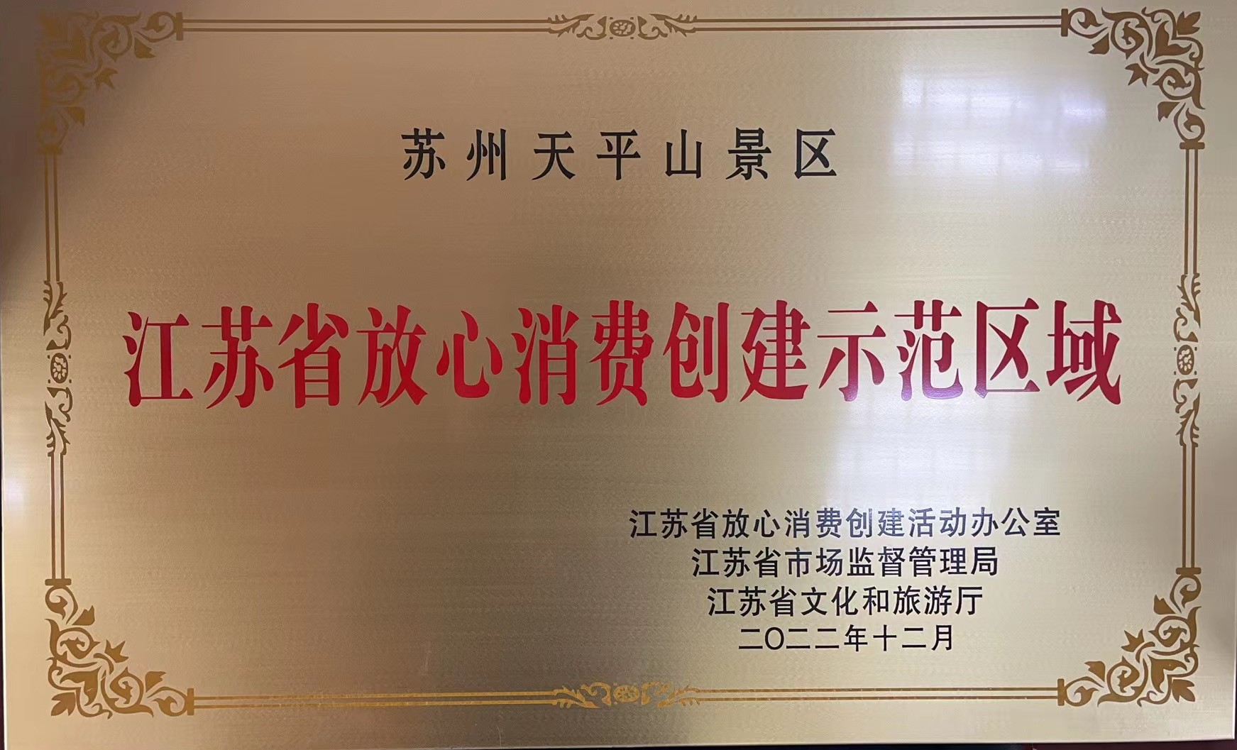 3月15日,相信苏州 消费“吴优”——2023年“3·15”国际消费者权益日纪念大会成功举办,市委常委、副市长唐晓东,市人大常委会副主任、市消保委主任吴晓东出席活动,并共同启动“放心消费提升年”。活动现场举行“江苏省放心消费创建示范区域”授牌仪式,天平山景区作为此次唯一上榜的景区景点类单位接受授牌。