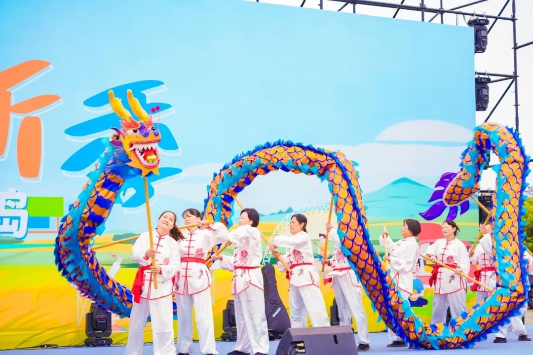“上岛”的精彩不止于此,精心准备的舞台活动,在锣鼓喧天中热闹开场,富有金庭镇特色的夹竹龙表演,喜庆上演,人舞龙飞,气势恢宏,将丰收的喜悦化作无穷的动力,传递给在场的每一个人!