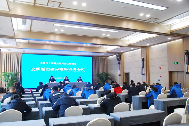 1月19日下午,无锡市太湖鼋头渚风景区管理处在樱花山庄召开文明城市建设提升推进会议,景区领导和各科室、部门相关负责人参加会议。