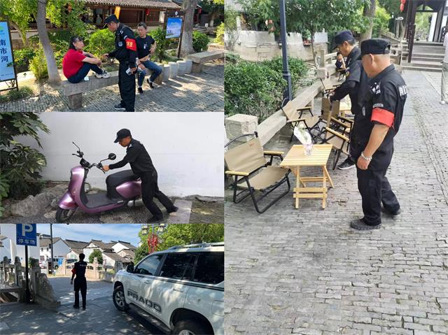 甪直古镇景区严格对标市、区两级环境整治提升百日攻坚专班集中体检要求,坚持以问题为导向,明确古镇景区与周边相连区域的管理责任,统一管理标准,强化督查检查,进一步加强古镇景区及周边环境卫生和市场秩序工作。保洁增派力量,加强对古镇景区街道、河道、绿化带、桥梁、标识牌、宣传栏、垃圾桶以及周边相连区域的卫生保洁,杜绝出现卫生死角;增加流动清扫及垃圾清运频次,加强河道保洁,及时打捞漂浮物和白色垃圾;严格落实旅游厕所5S管理要求,安排专人每半小时进行清扫,并且安装喷香机减少厕间异味。保安定人定岗,落实路段区域包干,加强现场管理,强化巡查检查,杜绝商家占道经营、利用公共空间随意堆放杂物,及时制止非机动车随意停放和劝阻游客不文明行为,加强景区及周边私设乱摆摊点和流动摊贩监管,安排专人引导机动车有序停放。