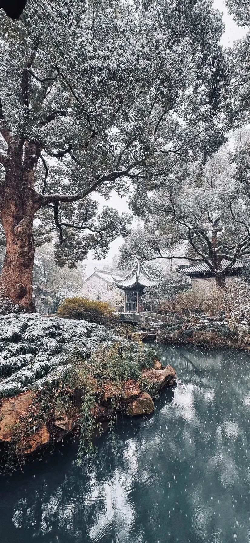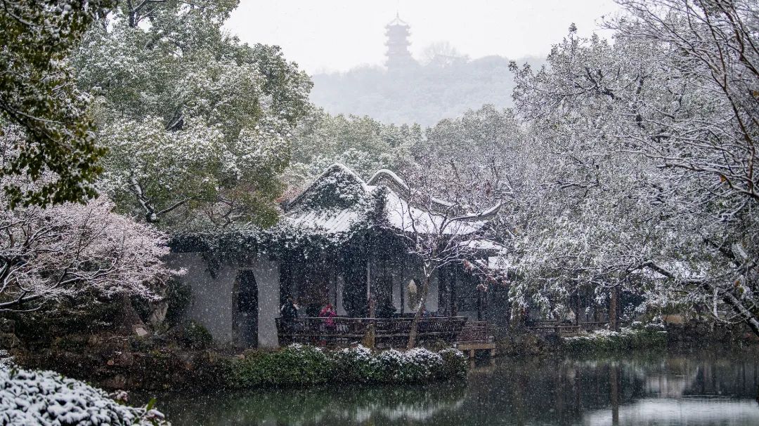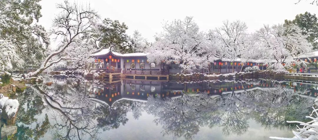 雪后的寄畅园,似是披上了素雅的“白衣”。翘角飞檐的亭子、水汽氤氲的湖面、粉妆玉砌的树林……处处皆白,美如水墨画卷。