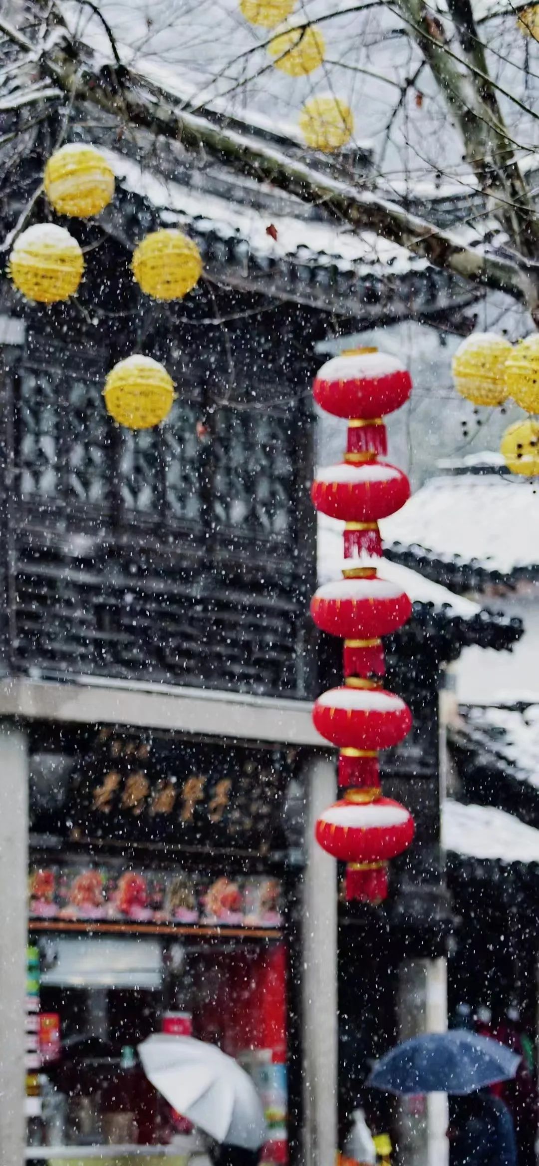雪花纷飞,天地苍茫。雪中的惠山古镇,如化了淡妆的美人。漫天飞雪惹人惊艳,粉墙黛瓦处处留白,街巷的民居上,早已覆上一层白雪,古韵悠悠,意境悠远。