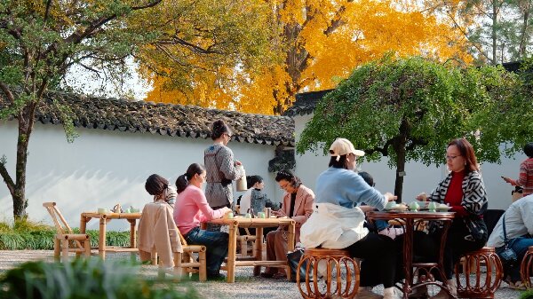 为丰富游客游览体验,景区紧抓观赏契机,围绕古银杏主题精心策划了一系列特色文化活动。一是开展“治平繁华”主题套色印章打卡活动。游客在银杏树下打卡转发,即可获得专属明信片,加盖融合古寺建筑与银杏叶形态的套色纪念章,吸引众多游客参与,成为记录旅程、分享美好的热门环节;二是推出售卖“鎏金杏雨”流沙冰箱贴,以动态流沙工艺生动再现银杏叶翩然飘落的唯美景象,集观赏性、纪念性与趣味性于一体,实现了景观价值向文创产品的成功转化;三是开展“治平寺银杏茶会”快闪活动,特邀专业茶道老师,面向市民游客现场展示并教学宋代点茶技艺,沉浸式体验宋式风雅生活。该活动深受传统文化爱好者喜爱,成为观赏季中一道典雅而深刻的文化风景。