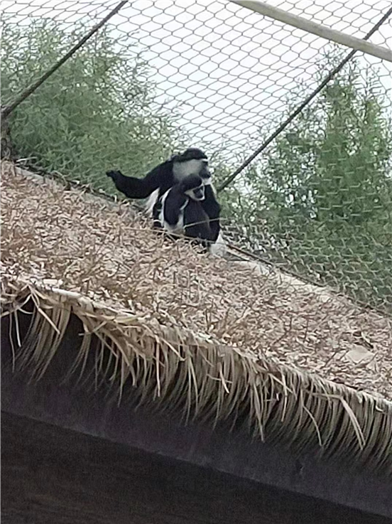 经过近3年的努力,今年6月底,一只母猴顺利生产一只幼猴,猴妈妈产后母性强烈,拒绝饲养员靠近,为了更好地掌握疣猴母子动态,摸索动物行为,确保它们的健康,饲养员经常在闭园下班后留守笼舍周围,潜伏观察动物。目前猴宝宝刚满6个月,也会偶尔离开妈妈独自行动。