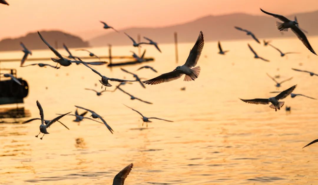 而红嘴鸥与暖调的光同时映入眼帘的刹那
