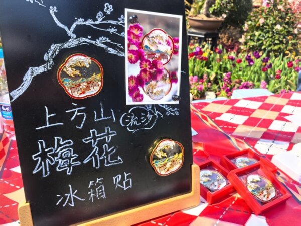 除此之外,为丰富游客的赏梅体验,赏梅期间景区同步推出了梅花时令套章和梅花主题冰箱贴供游客现场体验和购买。造型别致的梅花冰箱贴,以范成大与梅的特殊渊源为灵感,融入梅圃建筑和雪花流沙设计,成为游客们争相购买的“网红”单品,留下属于自己的“梅”好记忆。