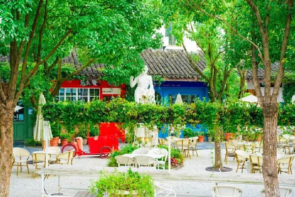 脚步继续向前,在“旺山遇见卢浮宫”,随处可见法国风情元素,汉白玉欧式人物雕像,法式风格石雕喷泉,白色小碎石子铺就的道路,浪漫的粉色小汽车……仿佛开启了一场浪漫的异国之旅,也成为乡村美学场景的集中展示地。在这里,茶饮、咖啡、西餐、中餐等一应俱全,徒步返程后的精致下午茶,松花团子和法式蛋挞的混搭,随时带给人们惊喜。