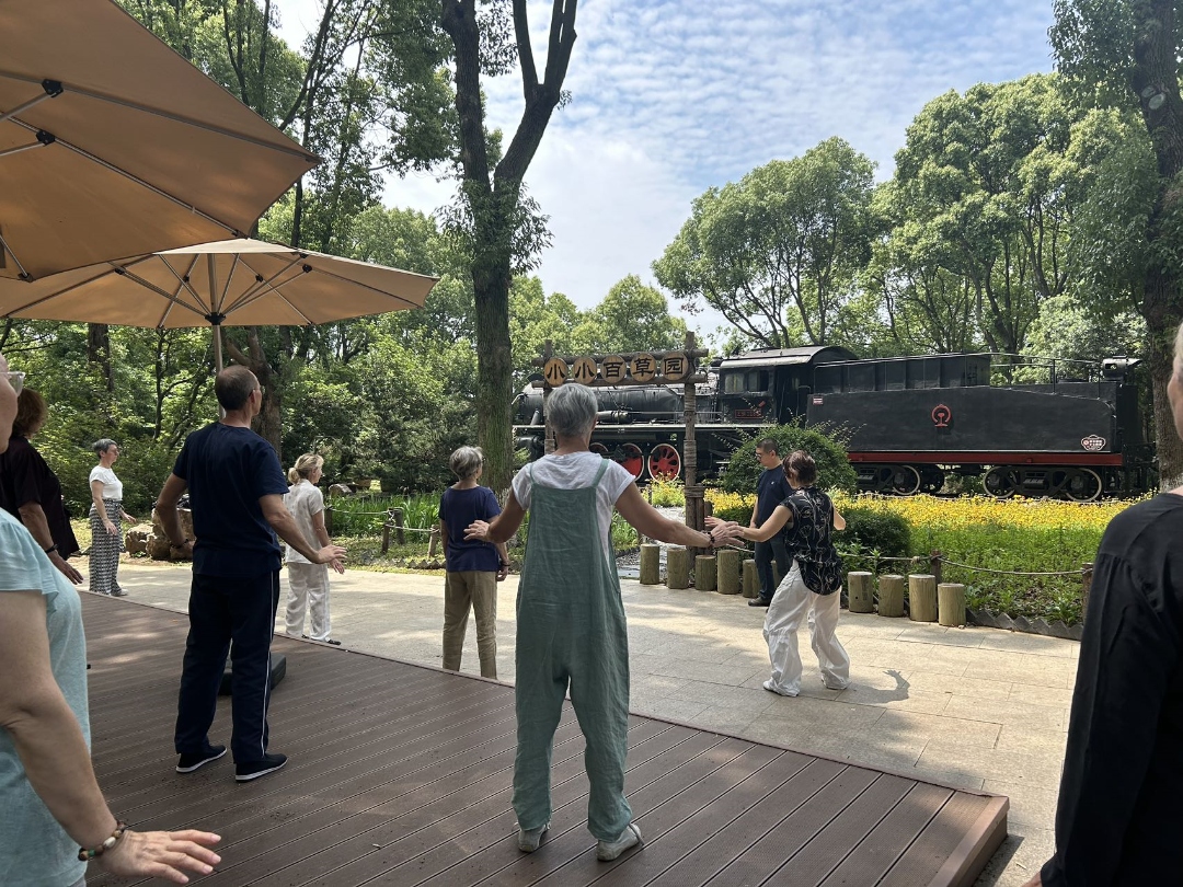 通过中医老师的细心科普,友人们还学习了中医药养生知识,认真、积极听讲并加入其中,现场体验了太极拳和打坐,深刻领略了虞山医派文化的博大精深。