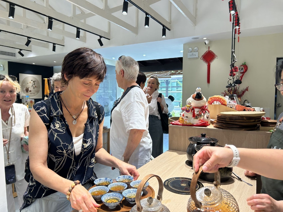 尤其对不止养生店内的中药茶饮和中国特色商品透露出了浓厚兴趣。临行前纷纷购买青花瓷杯盏和养生茶饮李良济,收获满满。