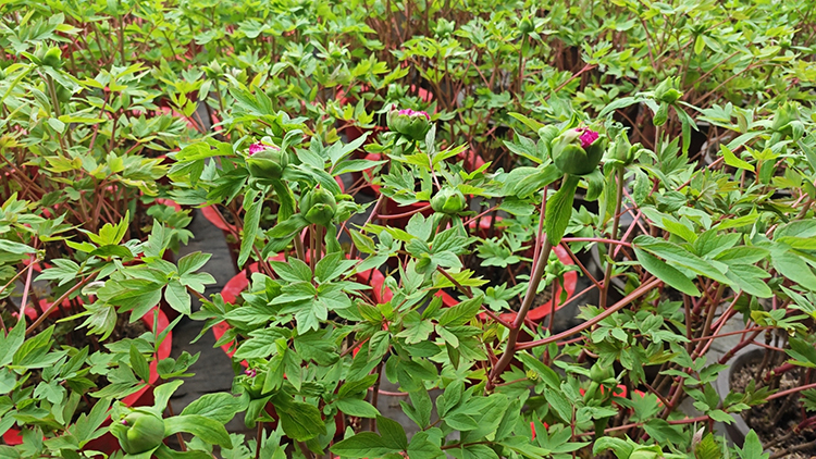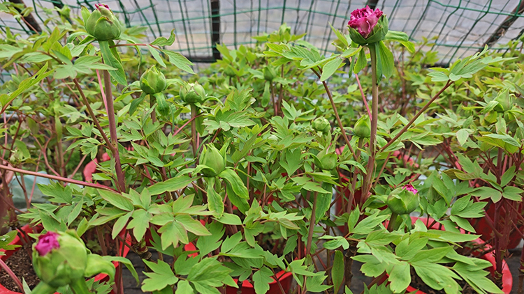 牡丹色、姿、香、韵俱佳,花大色艳,花姿绰约,韵压群芳,深受国人喜爱。近日,常熟尚湖景区的催花牡丹已步入尾声,尚湖温室大棚内,催花牡丹枝条伸展,翠绿一片,含苞待放。