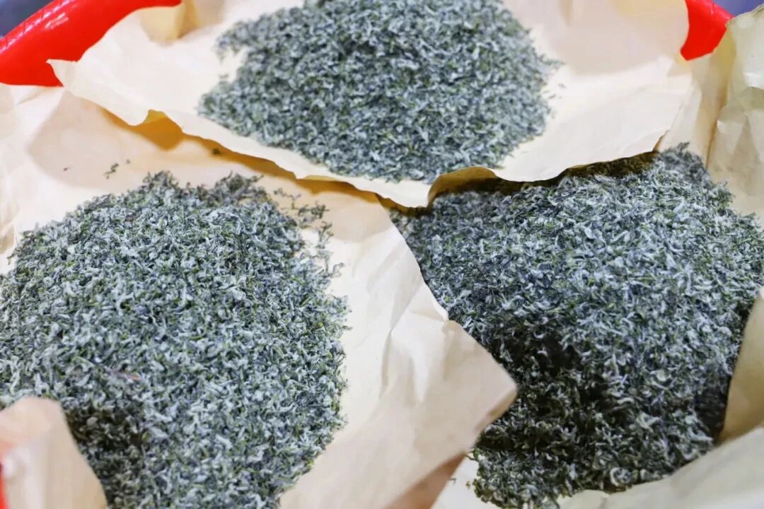 碧螺春的鲜香,离不开国家级非遗古法炒制工艺。全程手工完成,遵循“手不离锅,茶不离锅”的要领,分高温杀青、热揉成形、搓团显毫、文火干燥四道工序,炒茶师傅凭多年经验把控锅温与力道,高温杀青去青气,热揉搓团定外形,文火干燥锁鲜香,最终炒出条索纤细、满身披毫的地道碧螺春茶。