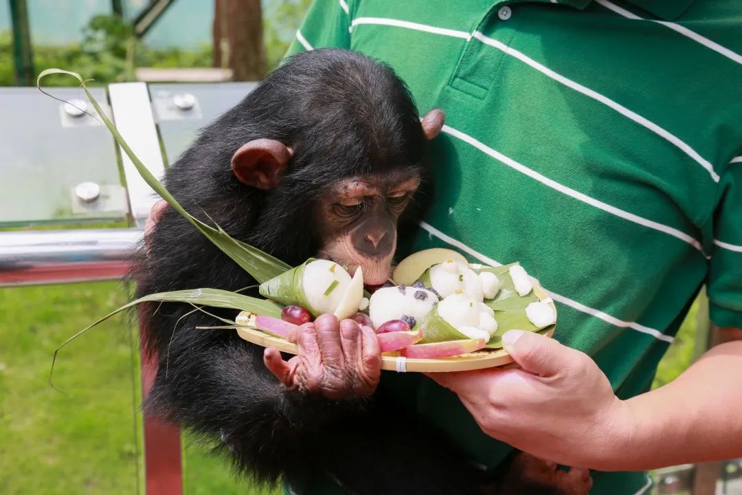 黑猩猩宝宝糖糖长大后的第一个端午节,