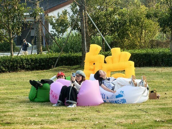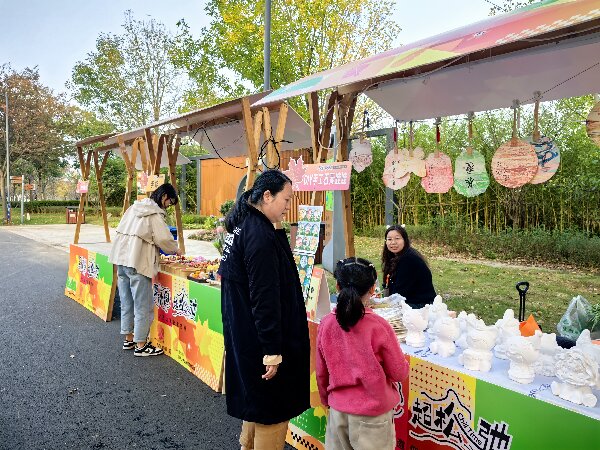 为此植物园精心策划以“耍秋趣 超松弛”为主题的赏秋活动,多角度调动入园游客的参与性,增添游览体验感。一是打造特色美陈,营造多样休闲空间。以湿地植物园区域的五彩杉树林为天然背景,搭建落叶“手提袋”装置,吸引游客打卡拍照;此外周边的草坪区域,布置有天幕桌椅、懒人沙发、卡通气模等,让市民游客可以静下来“躺平”,度过悠闲的周末时光。二是开展“拾秋”跑团活动,趣味科普植物知识。景区专门设计有赏秋打卡地图,参与者根据任务要求,完成果实知识快问快达、落叶收集、氛围感照片打卡就能获得植物园科普图鉴,趣味的科普方式,受到了亲子家庭的喜爱。三是增加配套服务,满足游客消费需求。活动期间,景区二期主线沿路布置了“秋趣”市集、售卖茶饮小食、手作玩具、植物花卉等,水杉栈道区域则引入了移动咖啡车,美食美景相得益彰,满足当下消费者的打卡需求。