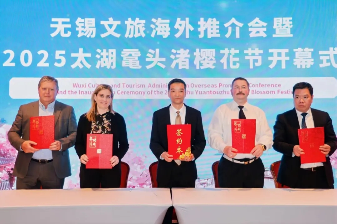 作为与日本弘前樱花园、美国华盛顿樱花园齐名的“世界三大赏樱胜地”,太湖鼋头渚此次借力国际化平台,与欧赛斯旅行社等四家欧洲旅行商签署客源互送协议,并授予四位海外推荐官“无锡文旅海外推广大使”称号。