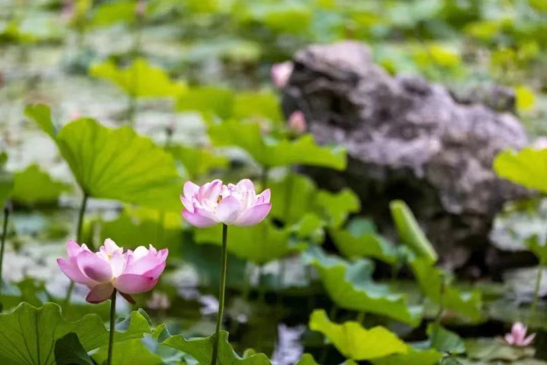 荷塘中那一片片粉色的莲花,如诗如画。