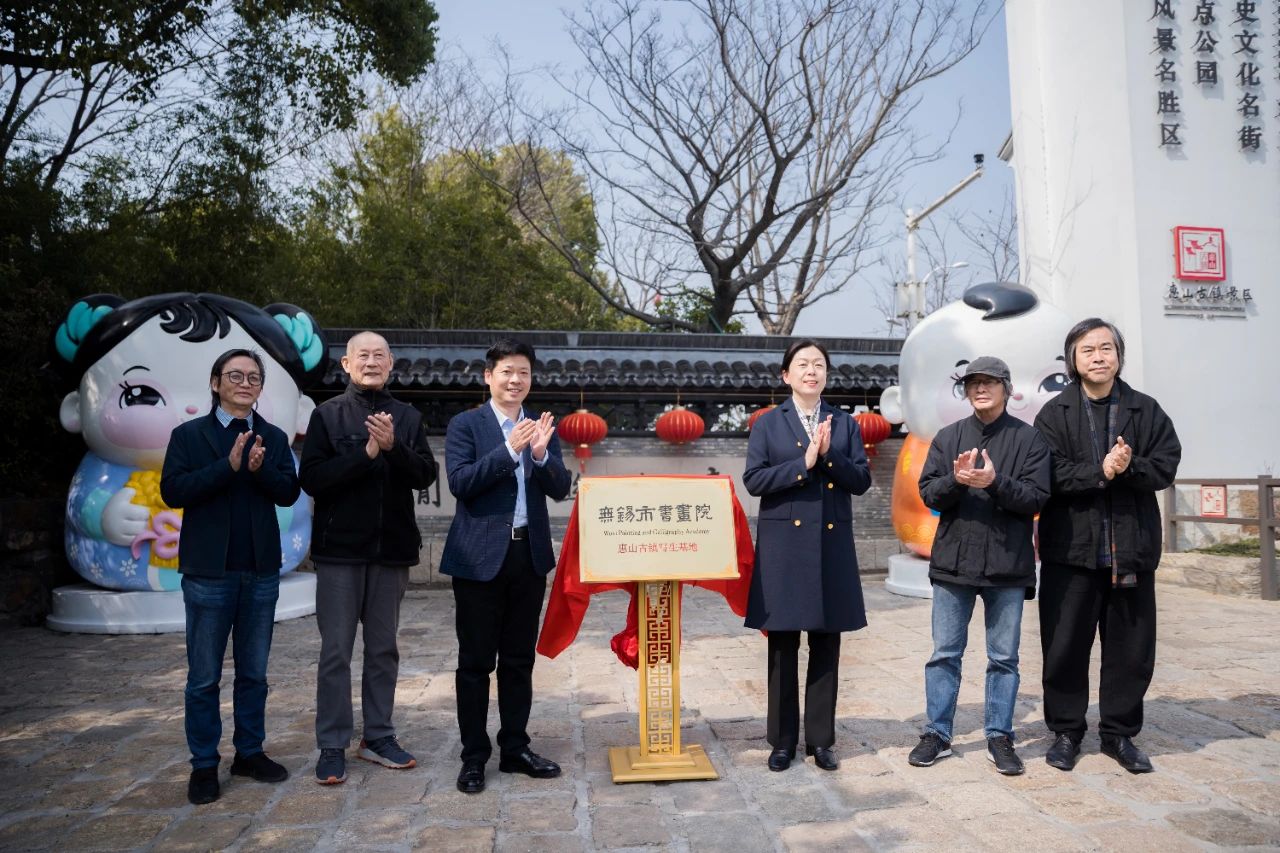 3月15日,在无锡市文化广电和旅游局、无锡市文化旅游发展集团有限公司的大力支持下,无锡市书画院写生基地揭牌仪式在惠山古镇举行。无锡市文化广电和旅游局党委书记、局长、二级巡视员蒋蕴洁,无锡市文化旅游发展集团有限公司副总裁俞铁军,为写生基地揭牌。