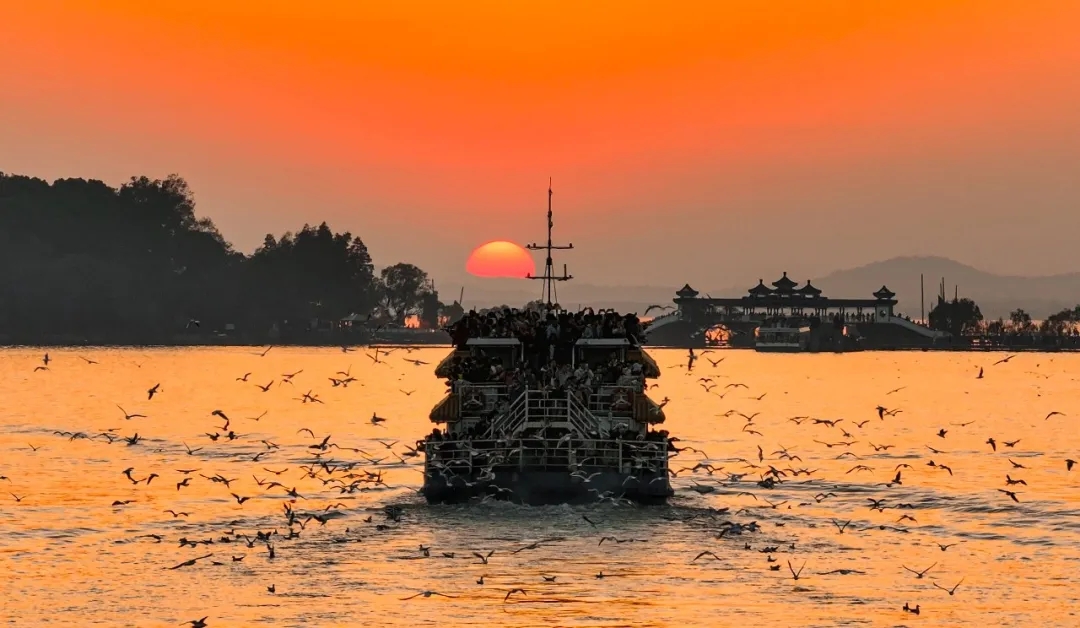 红嘴鸥的存在,不仅为鼋头渚增添了生机,更唤醒了人们对自然的敬畏之心。在这个快节奏的时代,能够与这些自然精灵相遇,是一种难得的缘分。站在船上,望着红嘴鸥在湖面上自由翱翔的身影,内心充满感动。这些跨越千山万水而来的精灵,用它们的方式诉说着生命的奇迹。