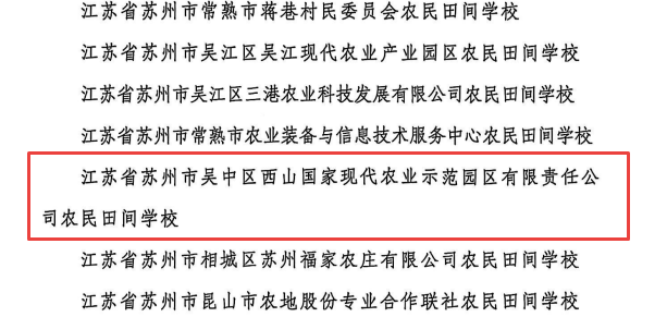 近日,中央农业广播电视学校、农业农村部农民科技教育培训中心联合公布第二批全国县级优质农民田间学校名单,西山国家现代农业示范园区有限责任公司农民田间学校成功入选,为苏州农民教育培训工作再添“新引擎”。