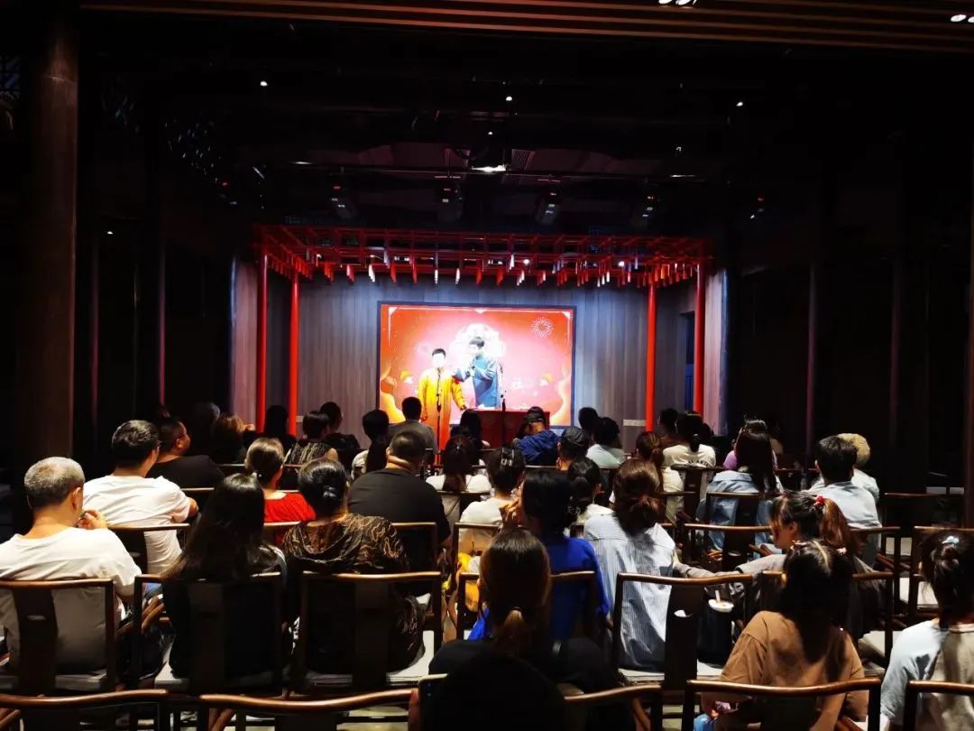 坐落于古镇街区的书店,不同于开在商圈、写字楼里的书店。书店与其所在的历史建筑,共同组成了一道别样的风景,历史建筑也因为文化内容的注入,重新焕发出勃勃生机,成为人们感受传统文化与时代生活的一个入口。“很特别的一家书店,这里有书有茶有文创,跟古镇气息很契合,特意跟朋友约了在这里碰头。”市民刘女士说,大隐书局最特别之处,是这里可以听相声、看演出。而小剧场,正是大隐书局为书店、为惠山古镇打造的独特的文化场所。