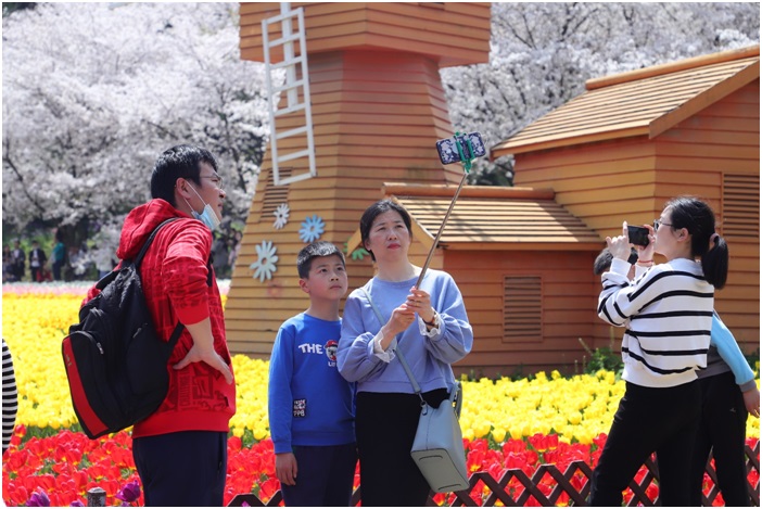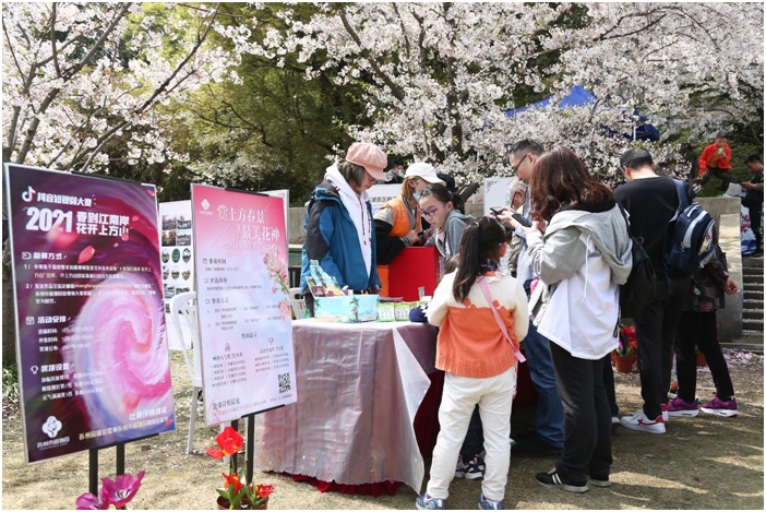 3月28日气温回暖、风和日丽,石湖上方山植物园迎来2021上方山“百花节”客流最高峰,进入3月下旬园内主打樱花品种染井吉野迎来盛花期,花开满枝,灿若云霞,极为壮观,吸引了大批市民游客前来踏春赏樱。3月27日至28日,园内举办了以“赏上方春景 寻最美花神”为主题的线下摄影投屏活动,现场气氛热烈,游客积极参与,纷纷上传美景美照,在大屏幕上即刻分享精彩作品,留下属于这个春天的独家记忆。伴着浪漫樱花和郁金香花海,摄影短视频滚动播放,游人驻足观看,共同感受春日的美好。