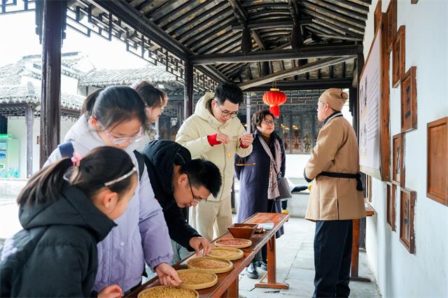 假日期间,景区精心策划“福甪来哉”主题市集活动,以“神兽送福—NPC引福—游客接福”为主线,主舞台设置了非遗连厢、活力快闪、歌手驻唱、主持人互动等体验环节,游艺区设置了套圈、二十一点、踢毽子等项目,同时还设置了30个特色摊位,地方美食、非遗手作、主题文创、围炉煮茶、创意设计、漫画速绘等超多惊喜,通过参与“通关文牒”、NPC情景互动,让众多游客玩得开心、购得放心、游得舒心。江南文化园青靛甪直景区白天场演艺《人间甫里》,通过偶遇风趣的汉服NPC与江湖艺人,赚取银票兑换好礼,参与沉浸式演艺《人间甫里》,亲历一场穿越千年的盛宴,感受不一样的江南市井烟火。夜幕降临,整个景区切换至“锦夜”模式,打铁花震撼回归,古戏台上演光影舞秀,数字灯光美轮美奂,吸引了周边众多游客前来入画江南。
